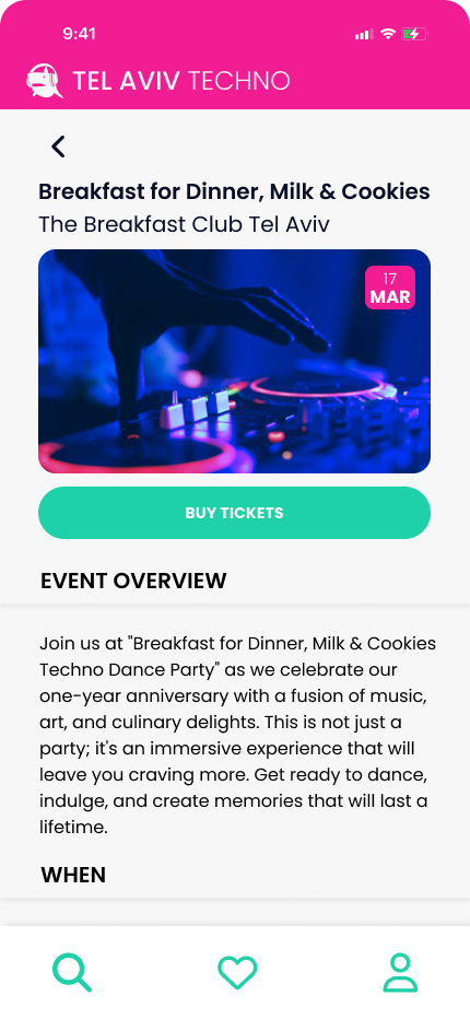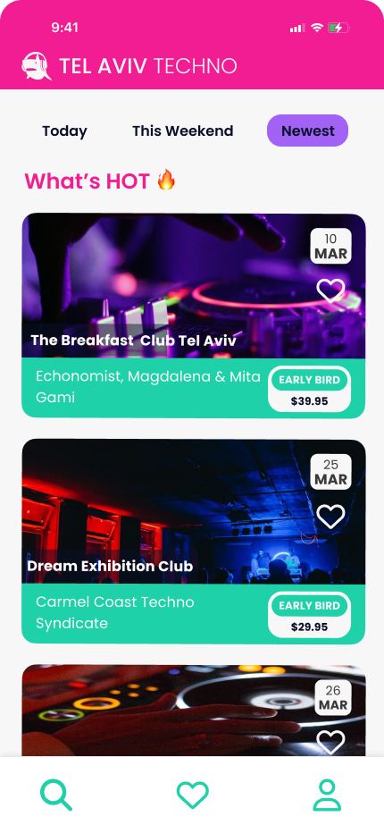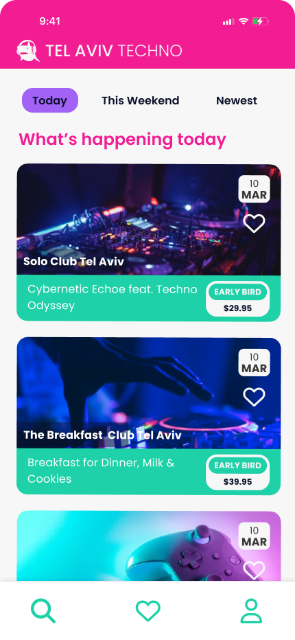 Conceived as part of an online course, Tel Aviv Techno came to life as an app which strives to connect techno music lovers with the vibrant music scene in Tel Aviv.  Supplied with a brief and low fidelity wireframes, I took on this project as if approached by a real client. I hope you enjoy what you see.